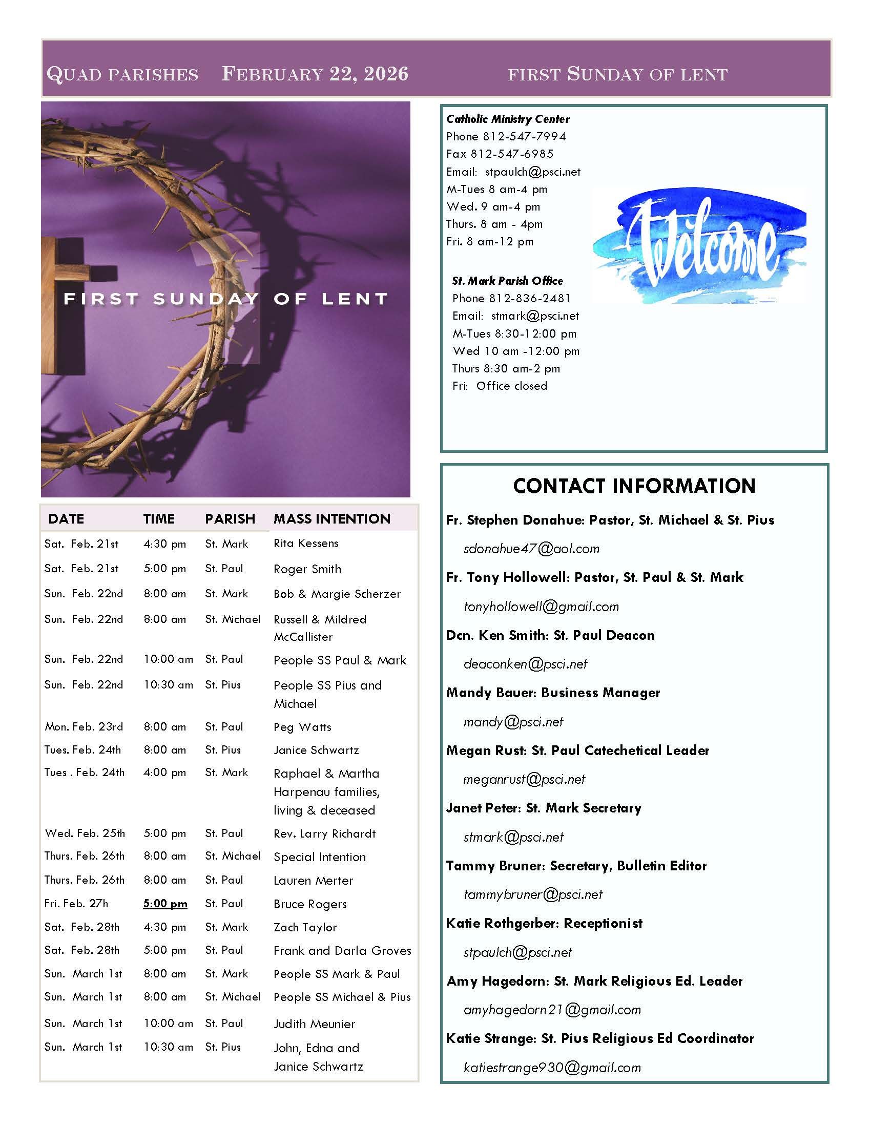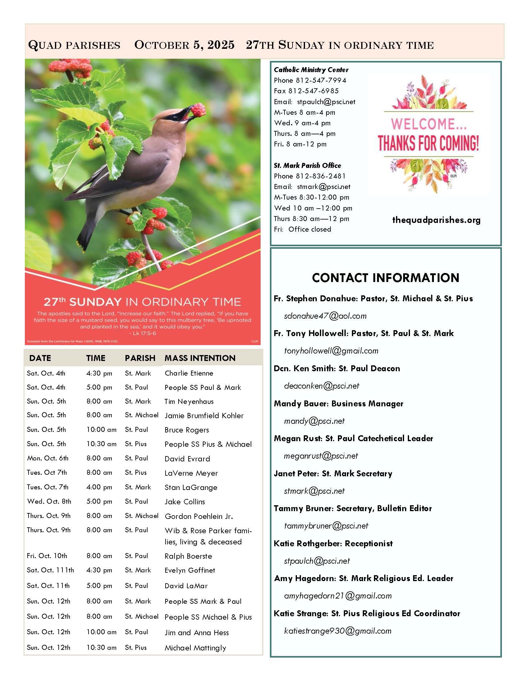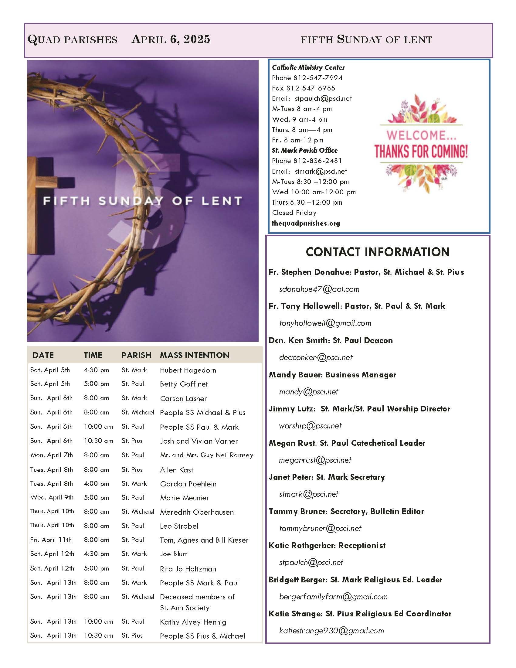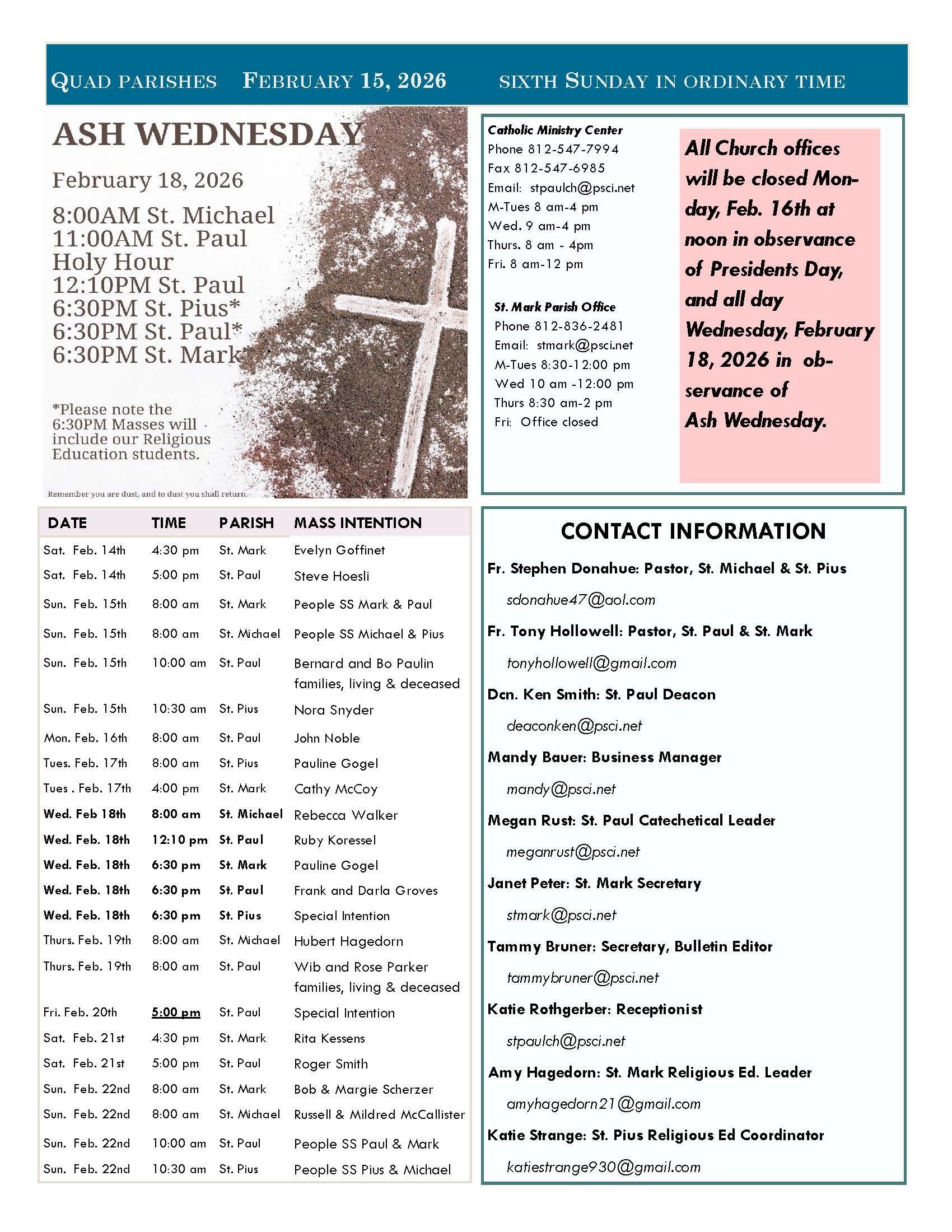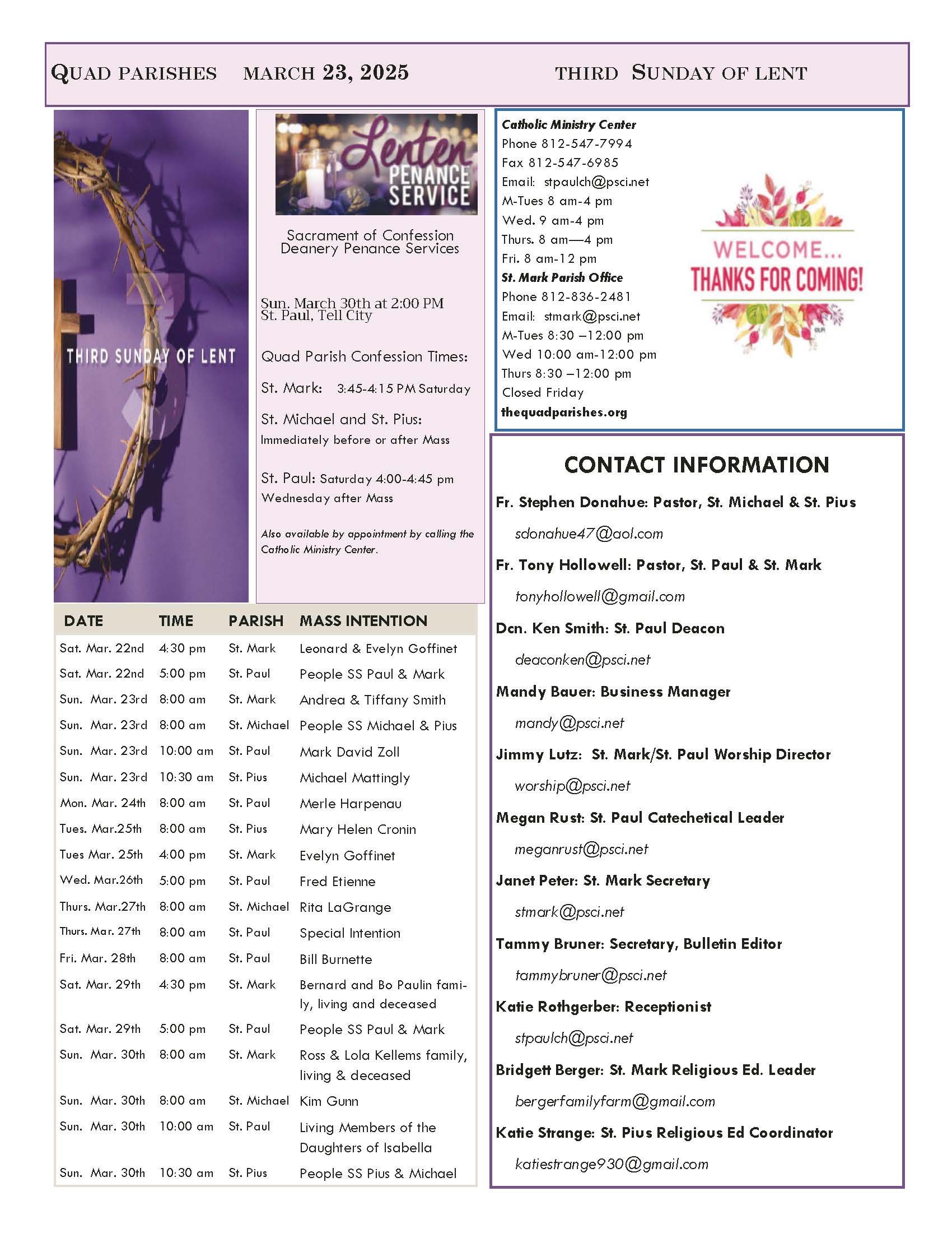 Would you like to advertise in our Sunday bulletin? Local business ads sponsor the printing of our weekly bulletins.