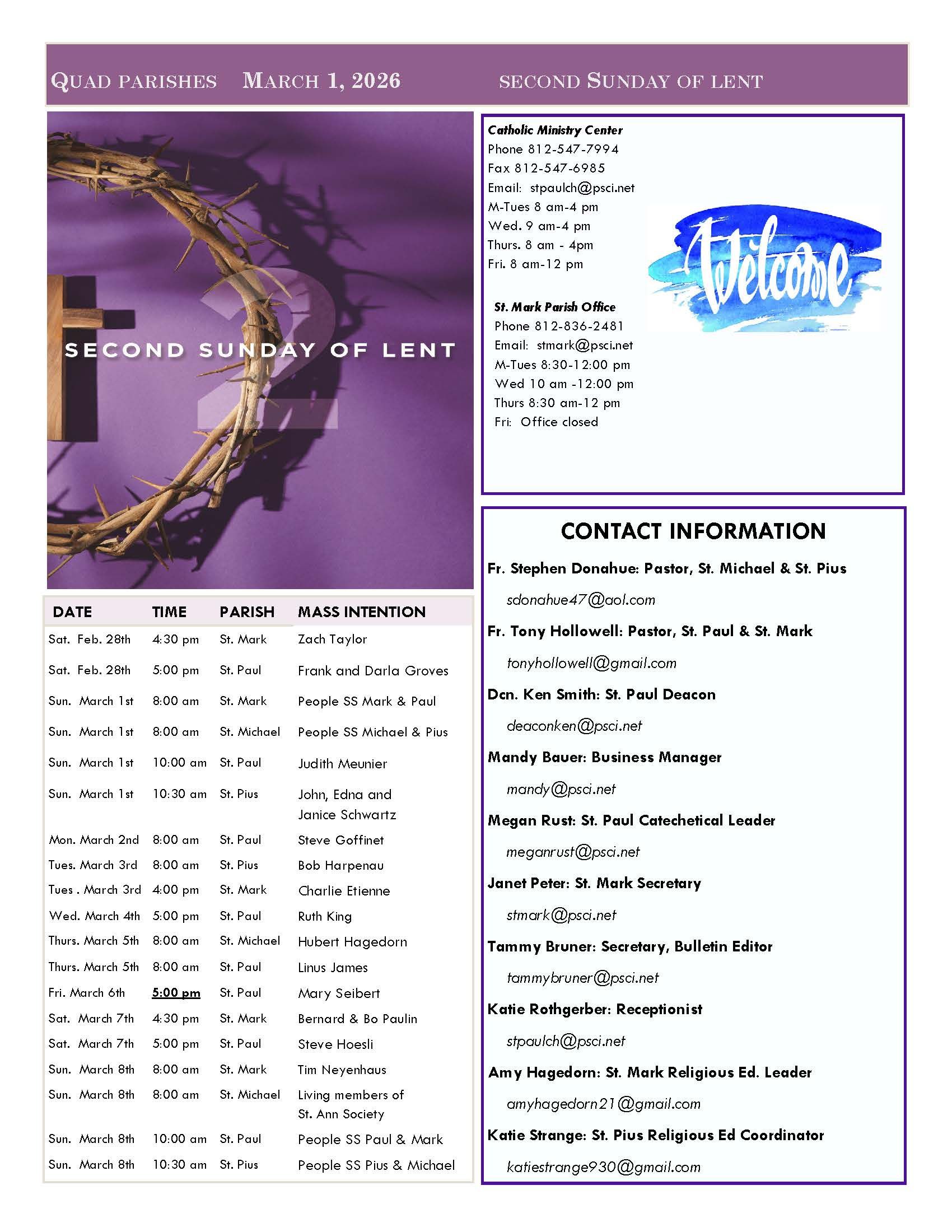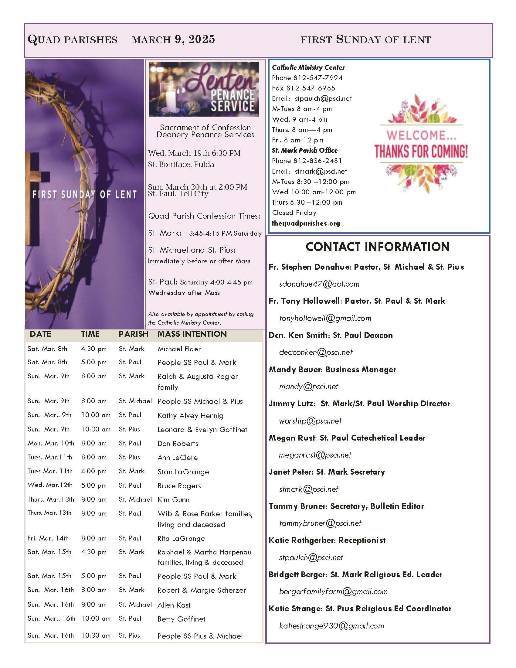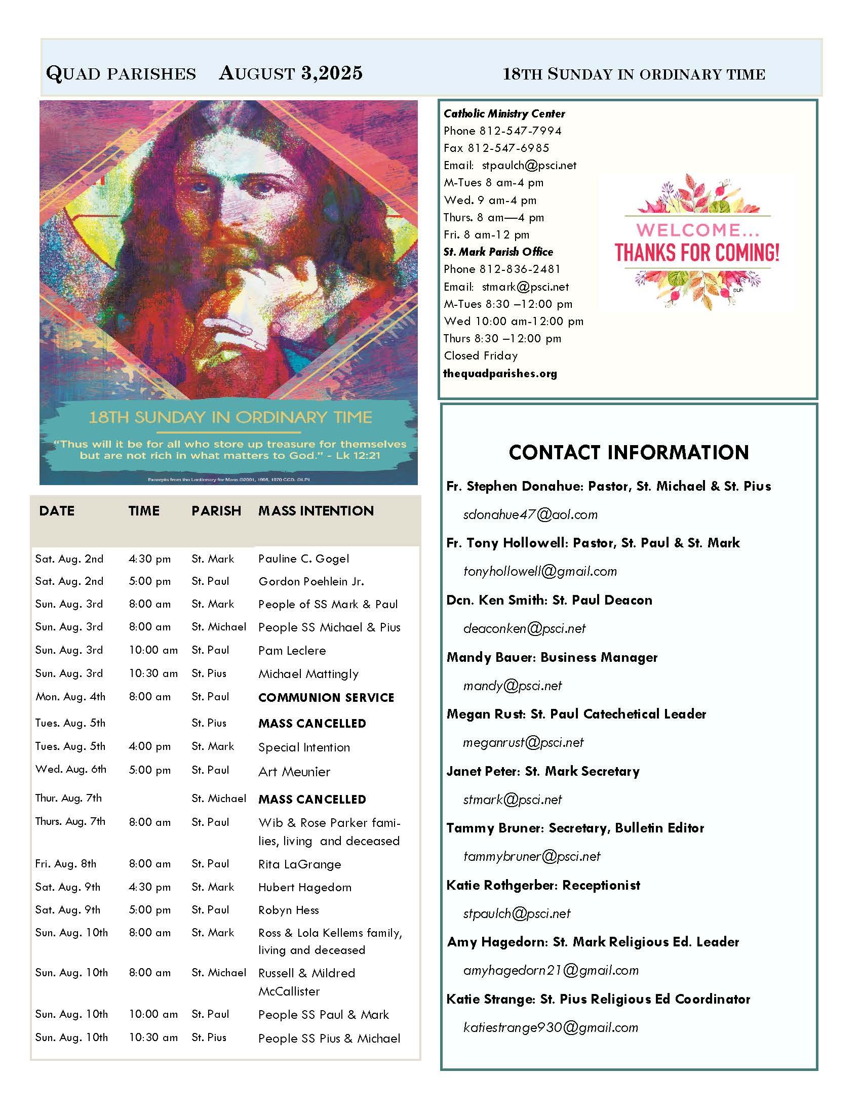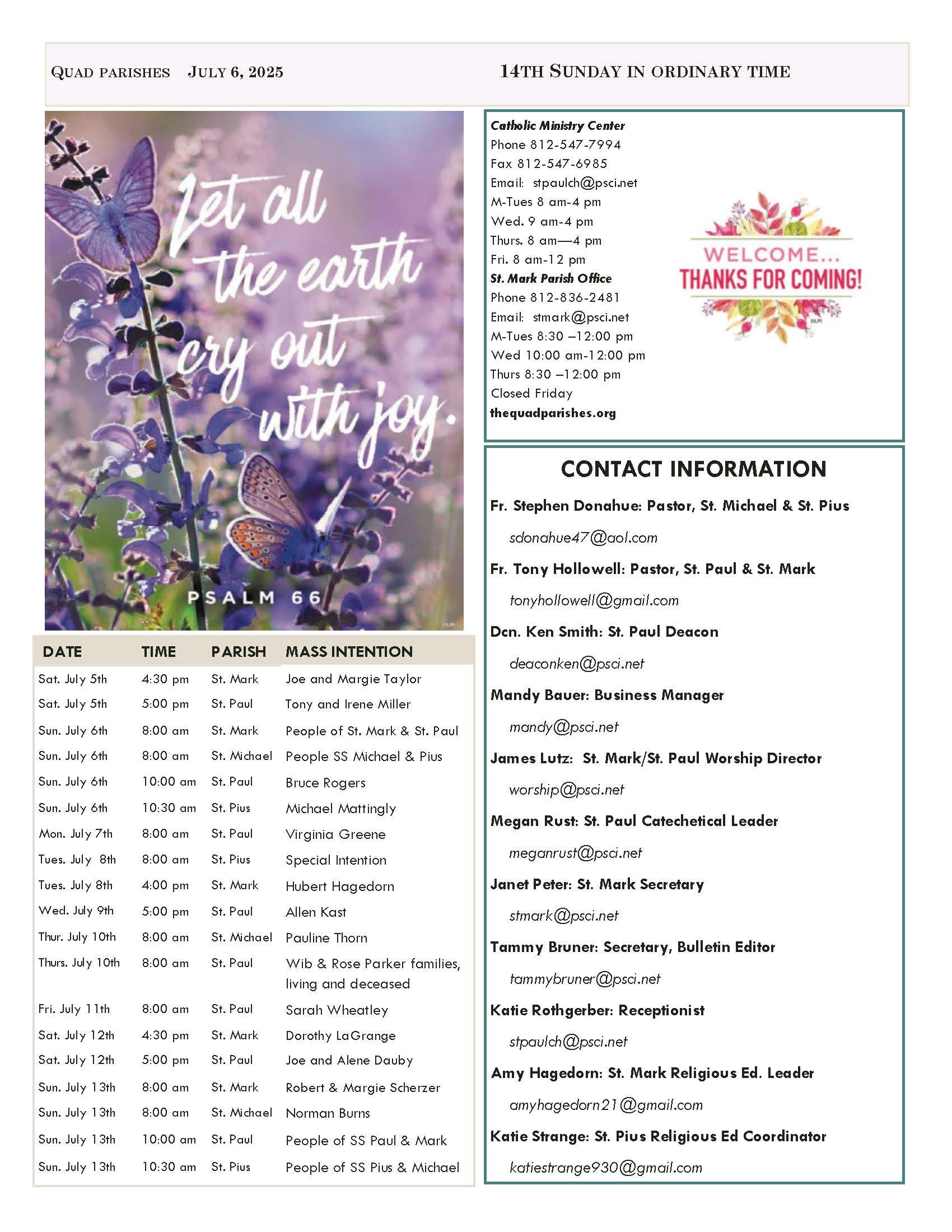 Would you like to advertise in our Sunday bulletin? Local business ads sponsor the printing of our weekly bulletins.