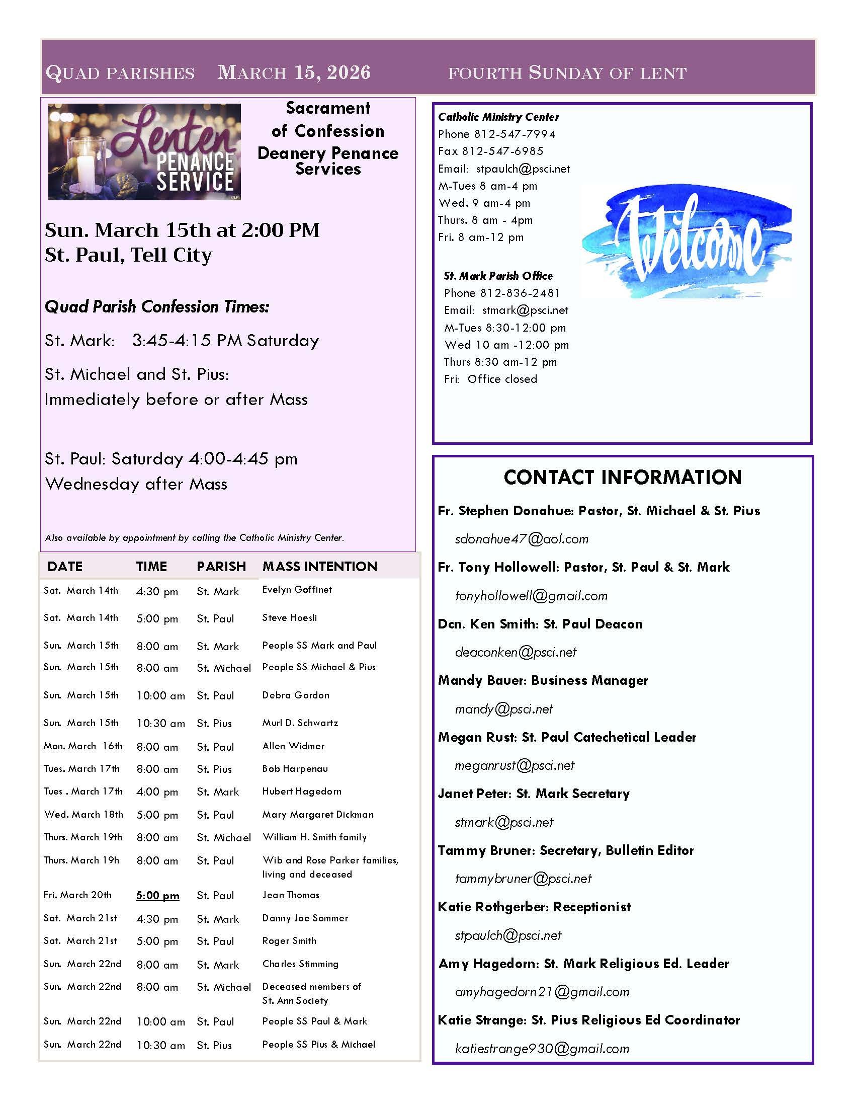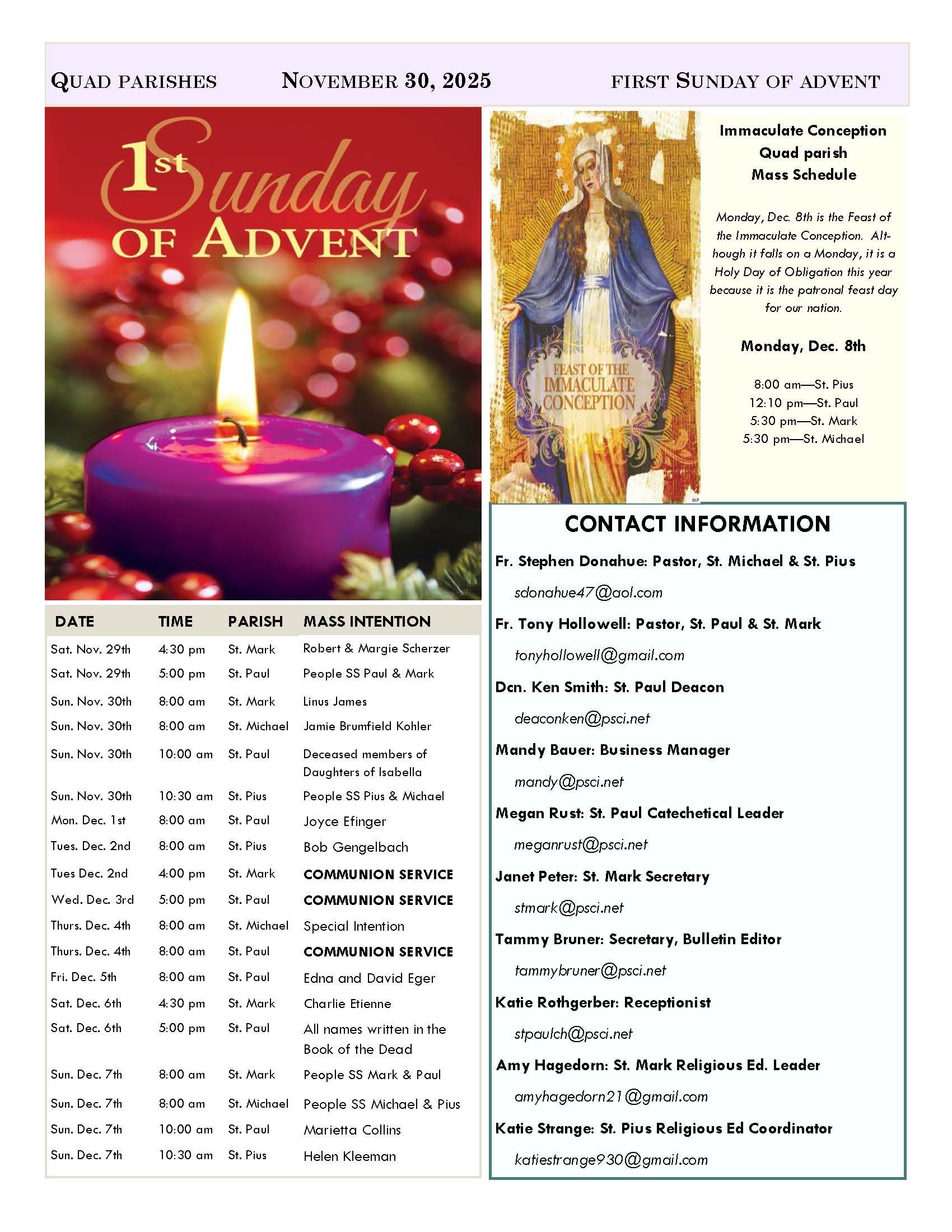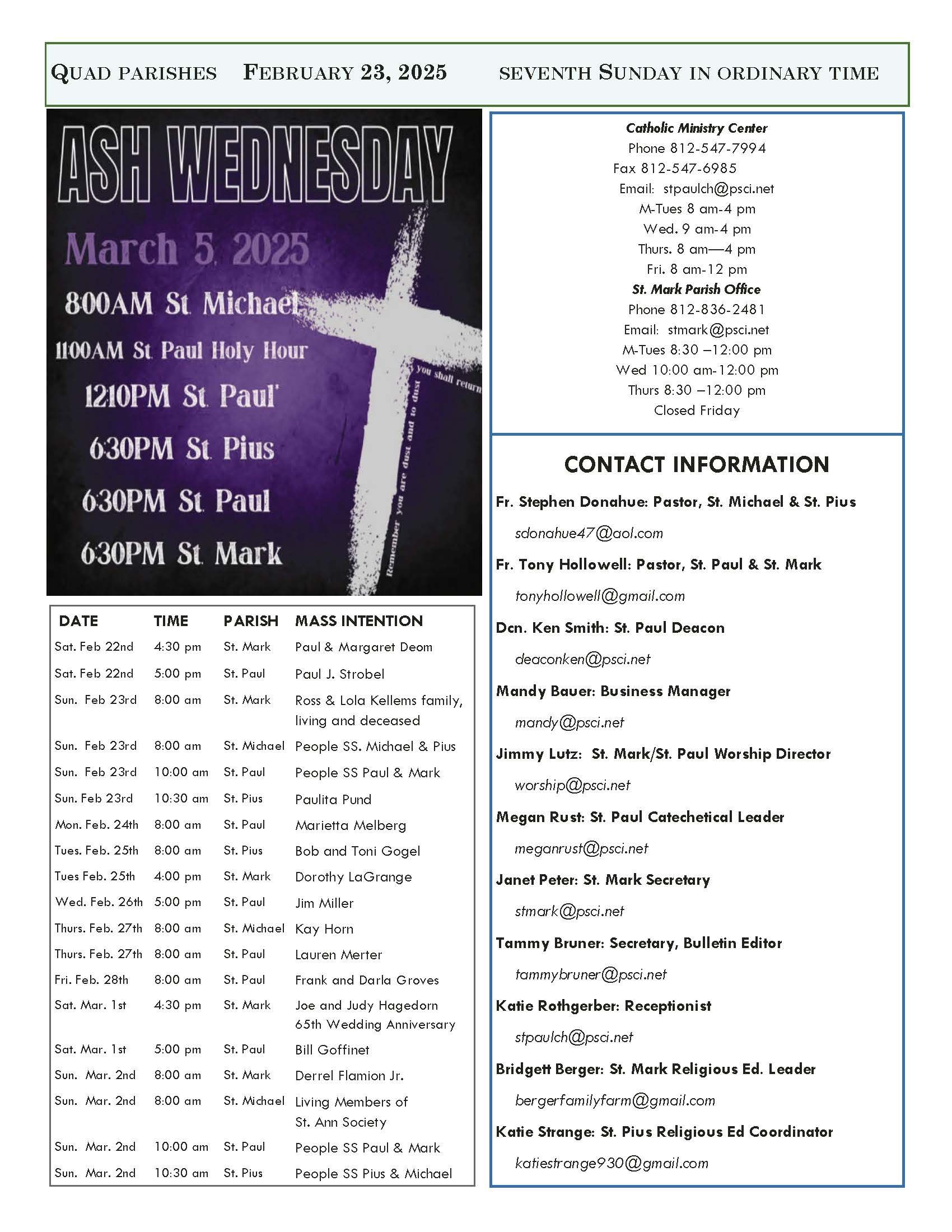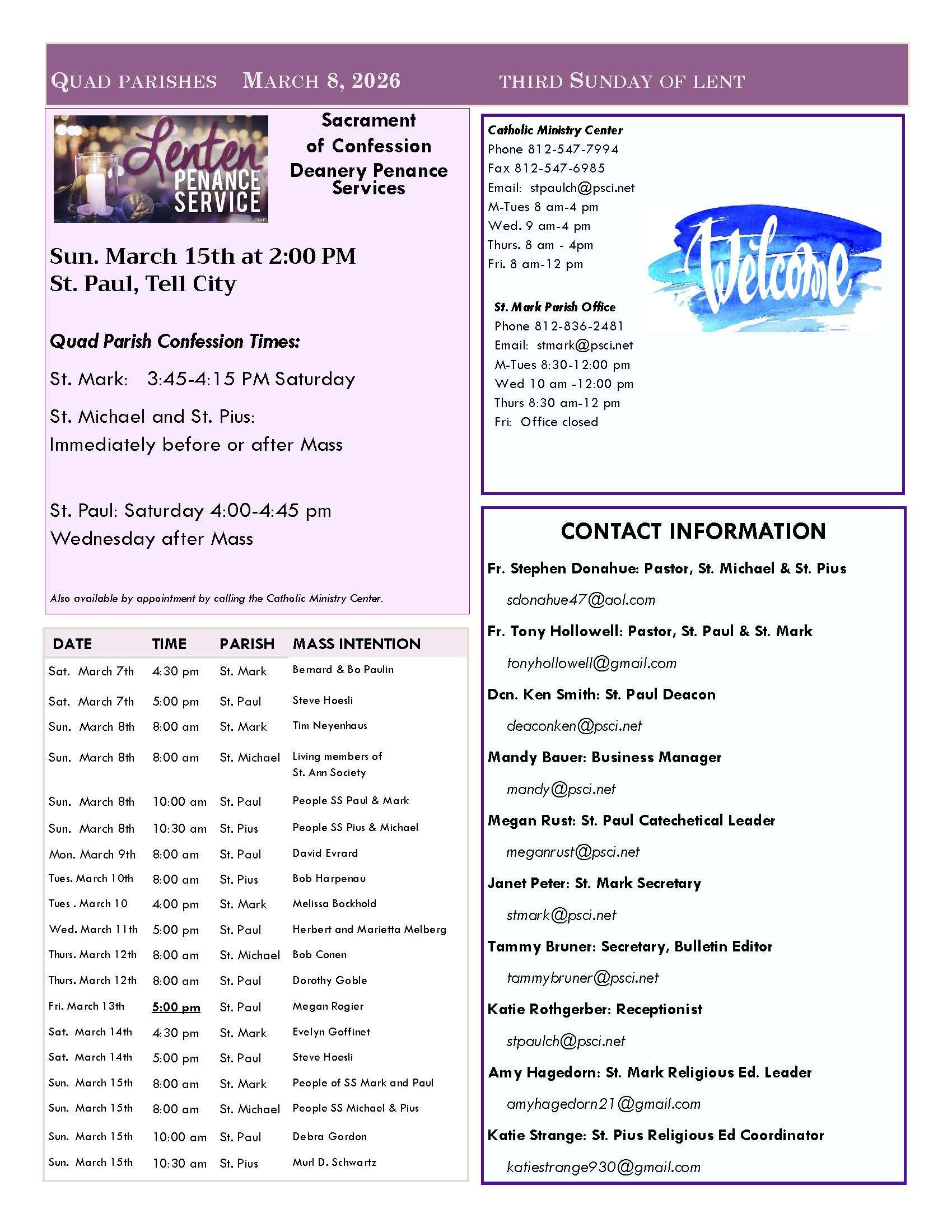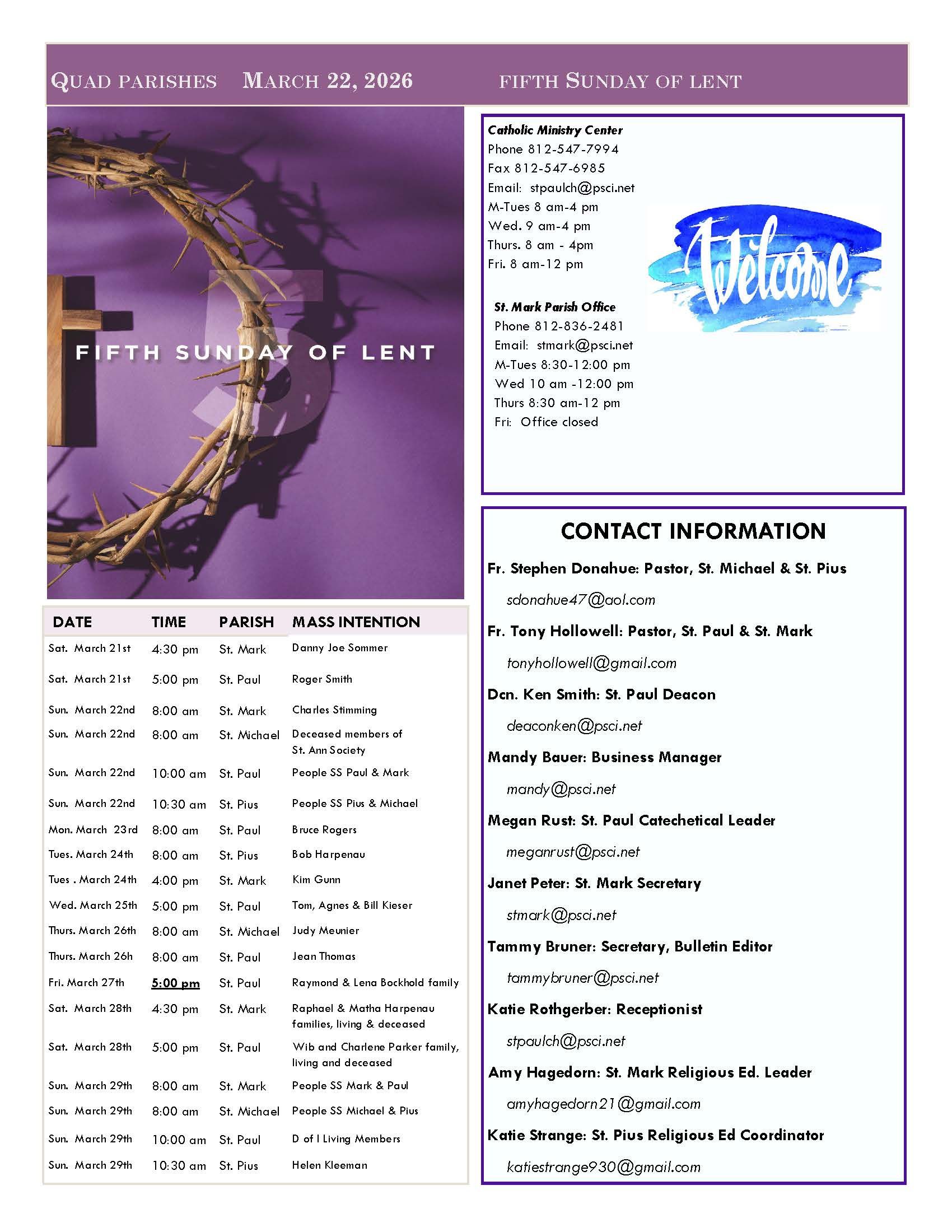 Would you like to advertise in our Sunday bulletin? Local business ads sponsor the printing of our weekly bulletins.