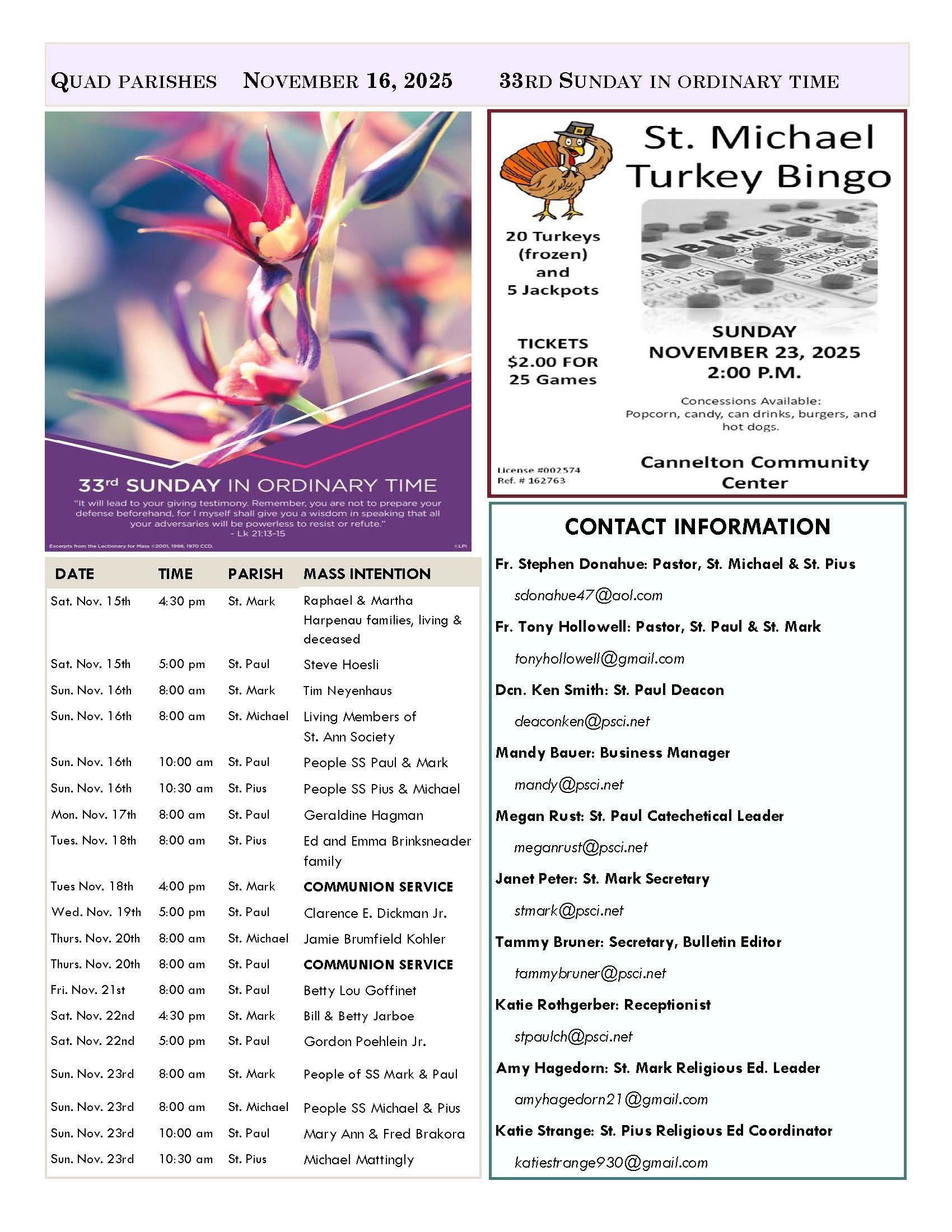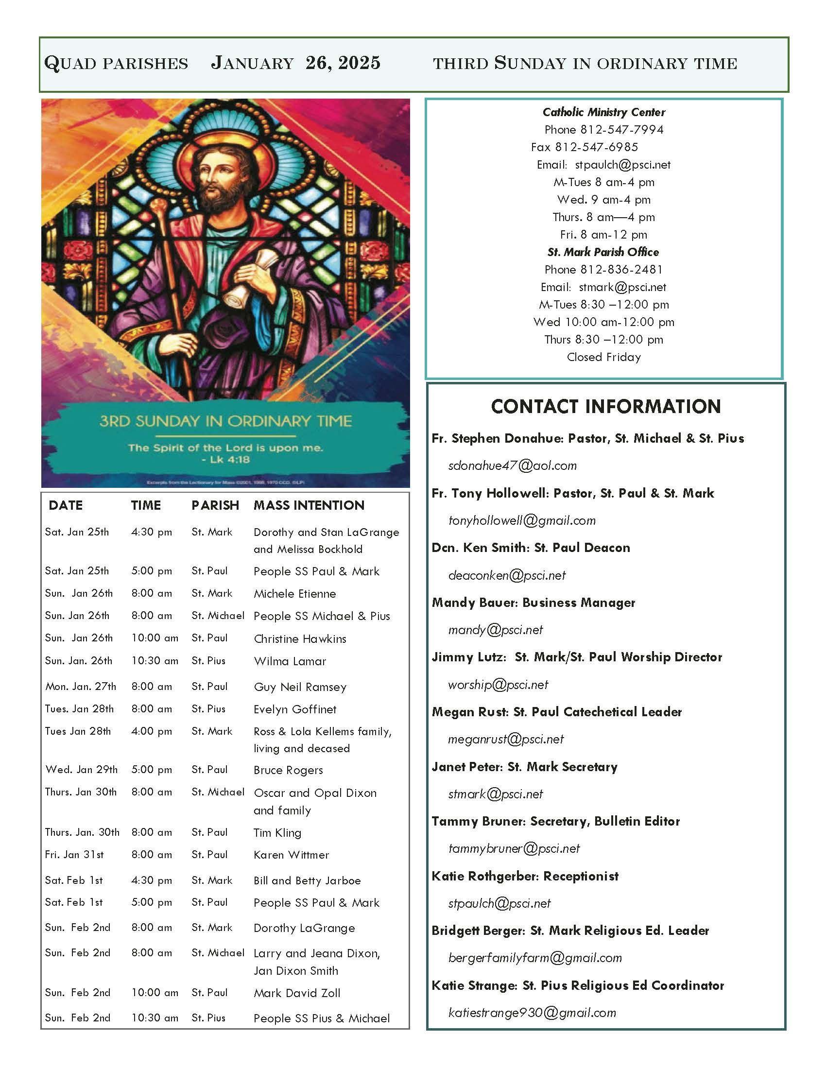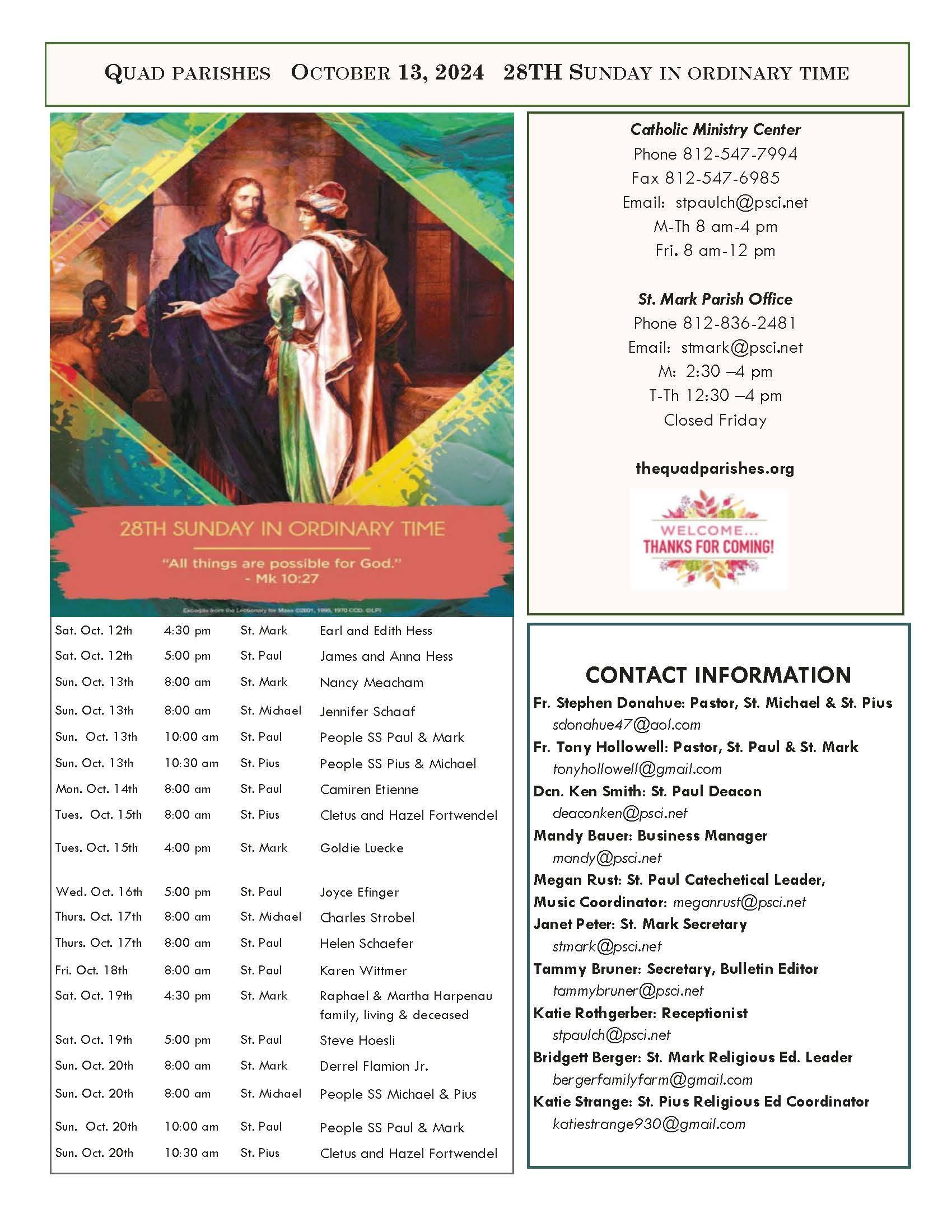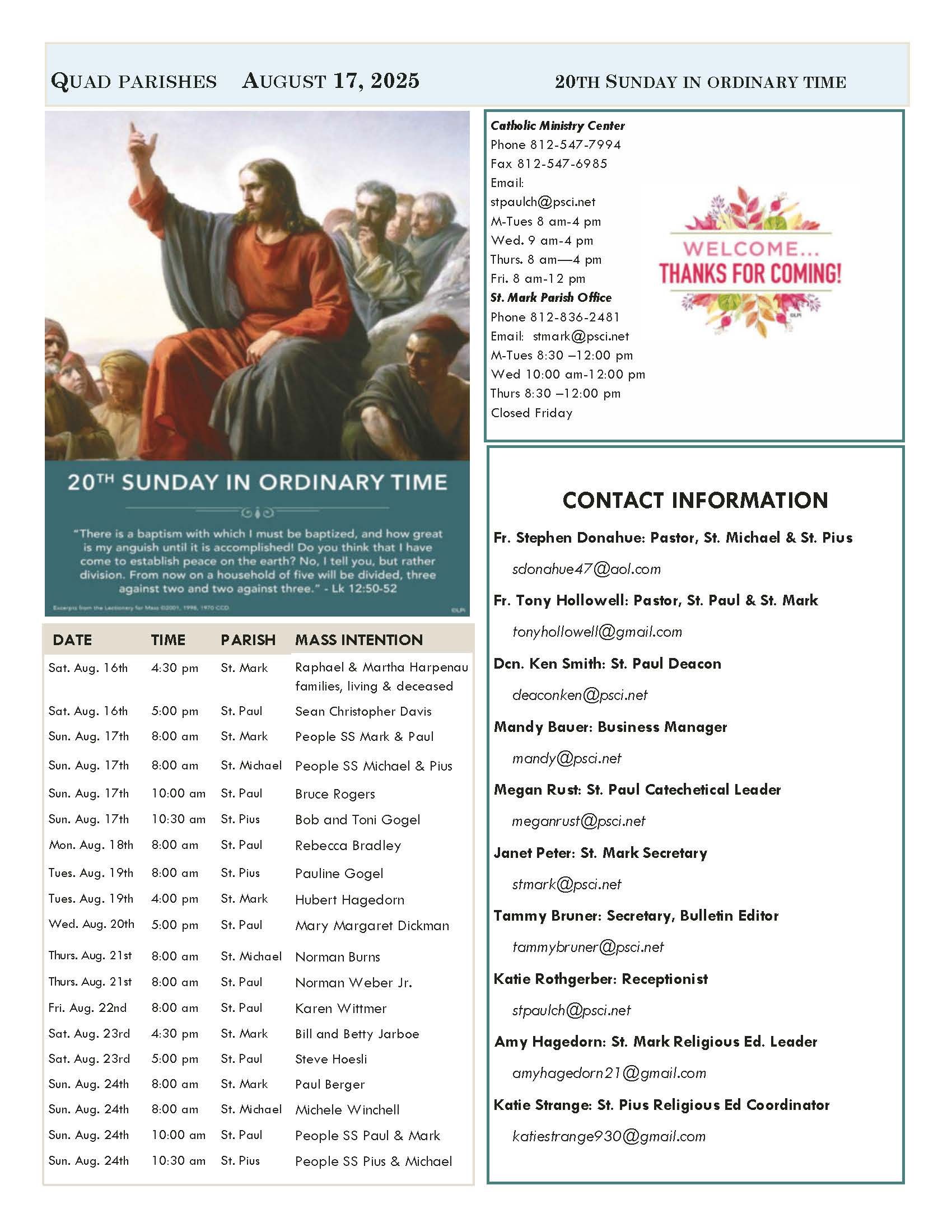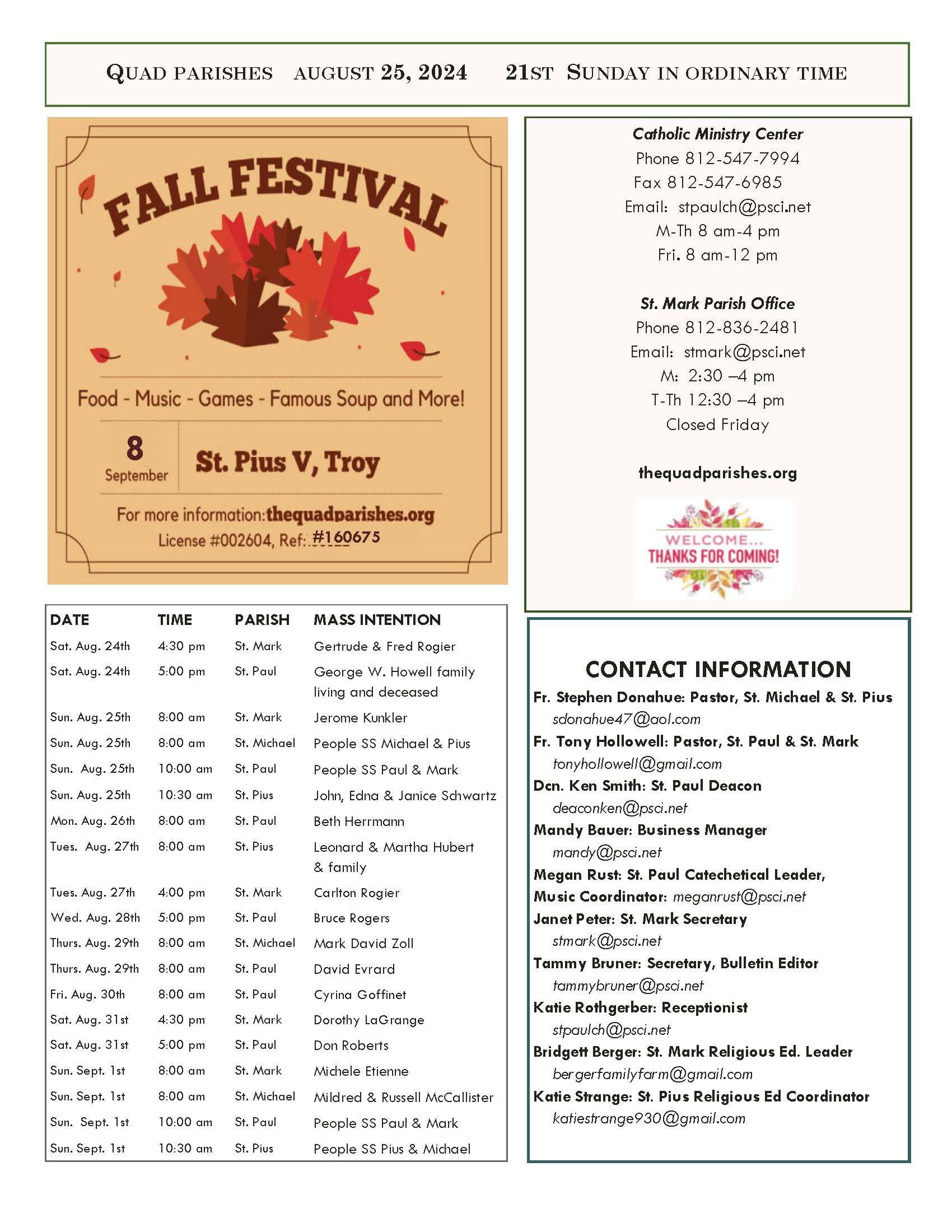 Would you like to advertise in our Sunday bulletin? Local business ads sponsor the printing of our weekly bulletins.