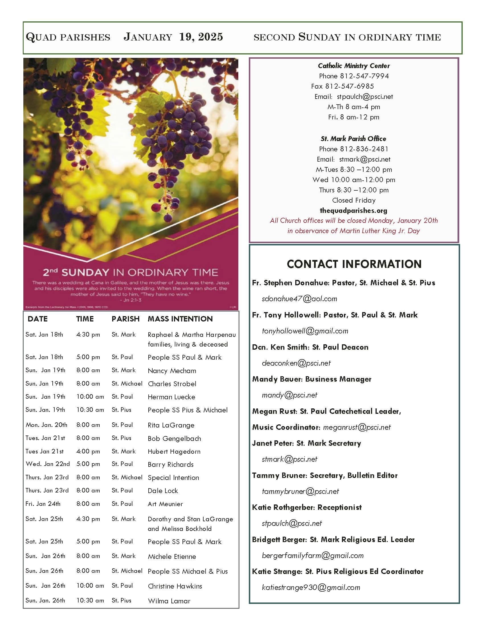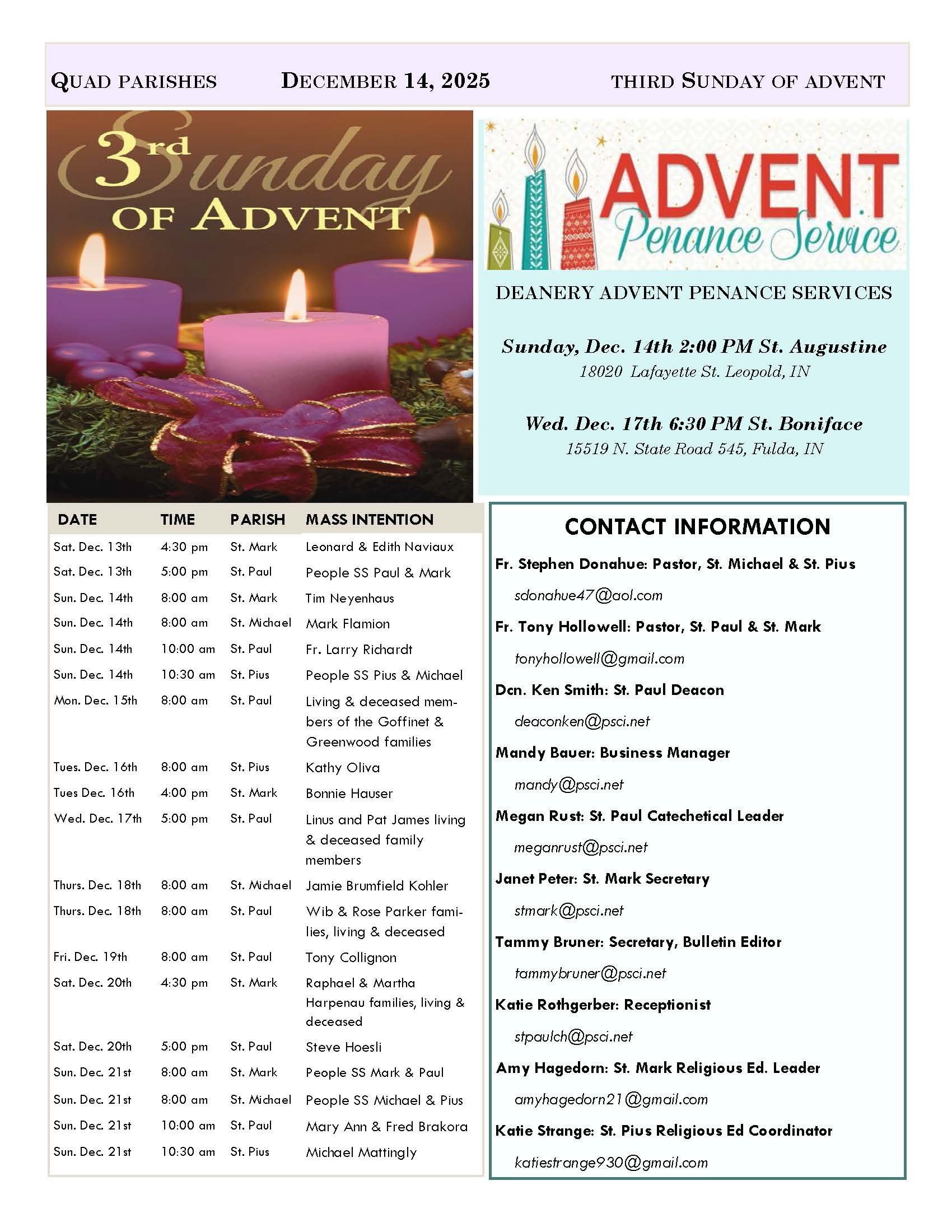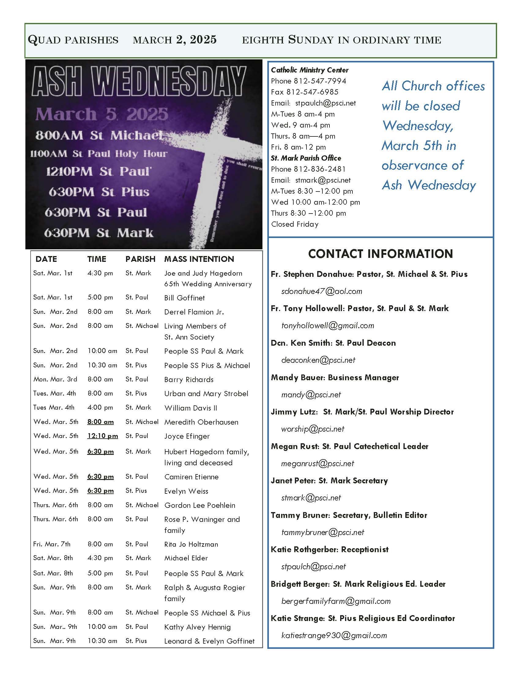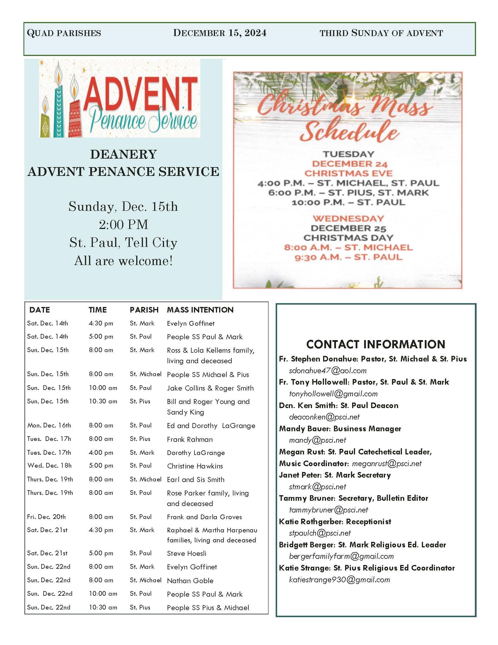 Would you like to advertise in our Sunday bulletin? Local business ads sponsor the printing of our weekly bulletins.