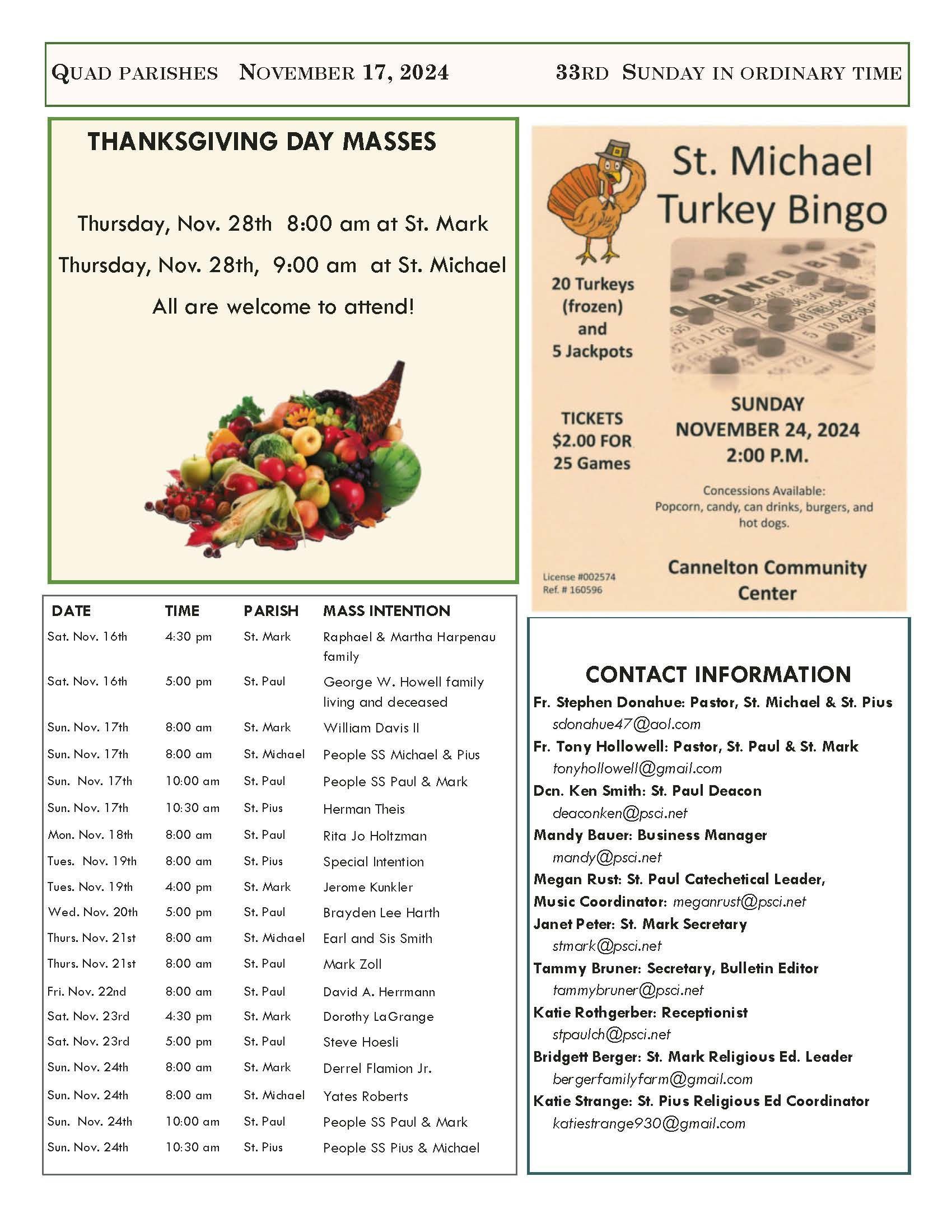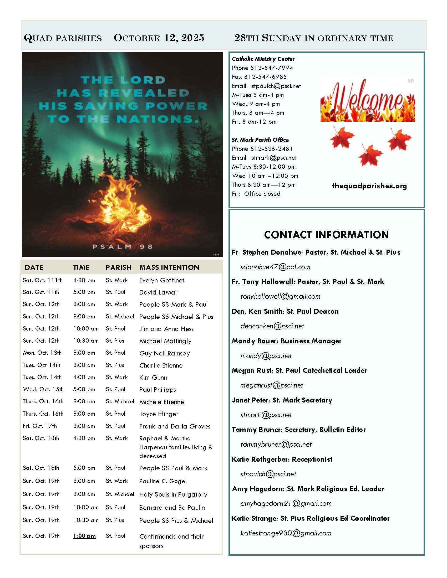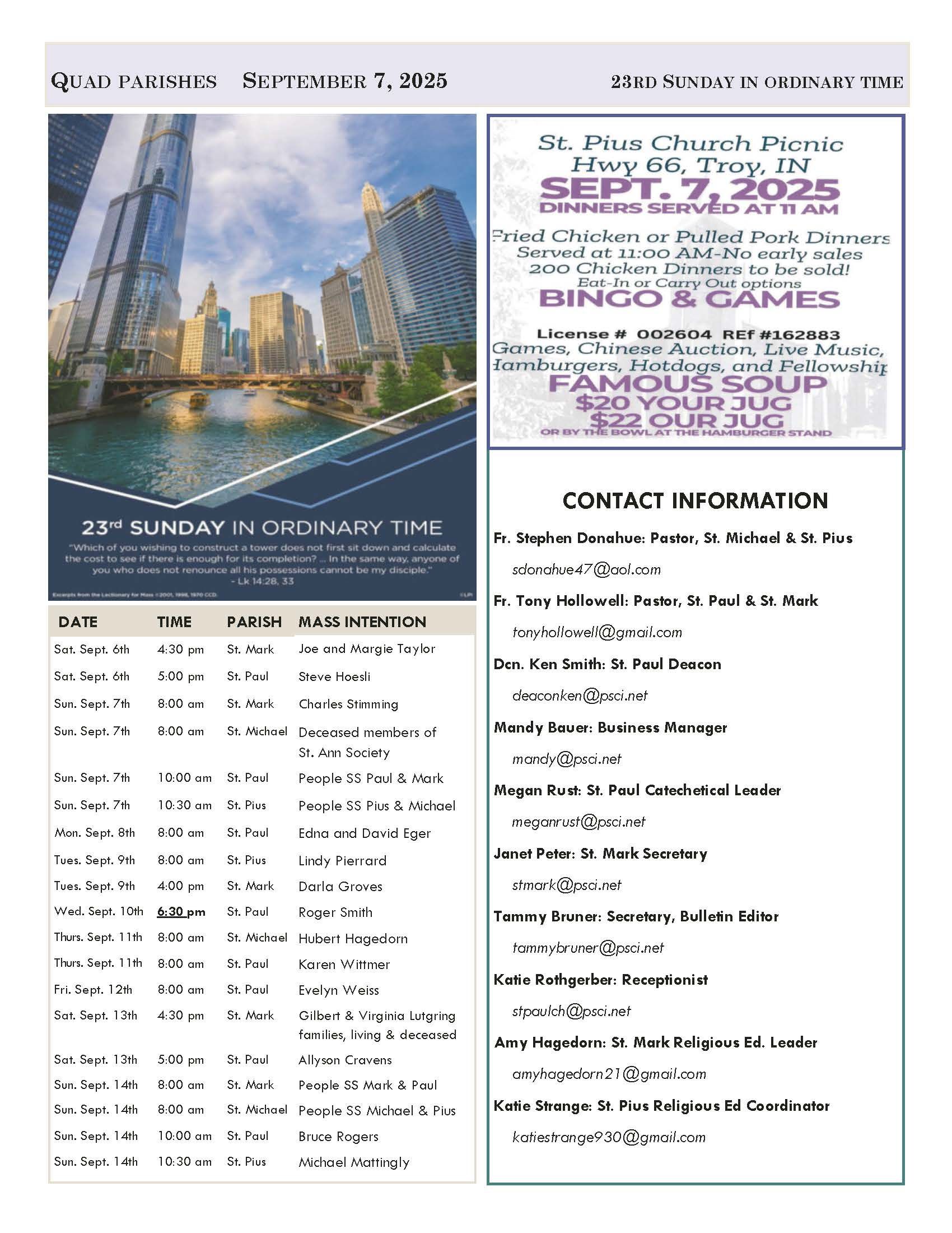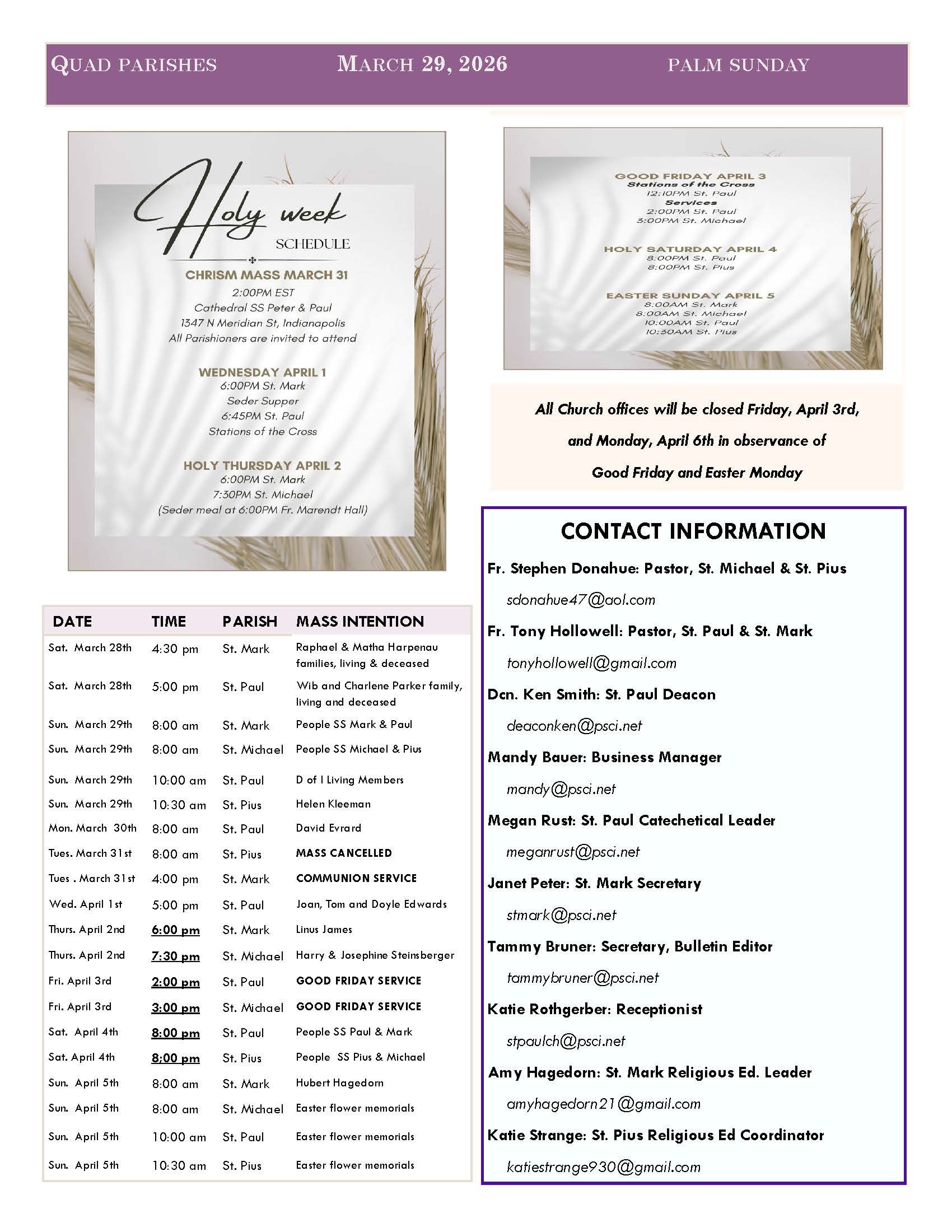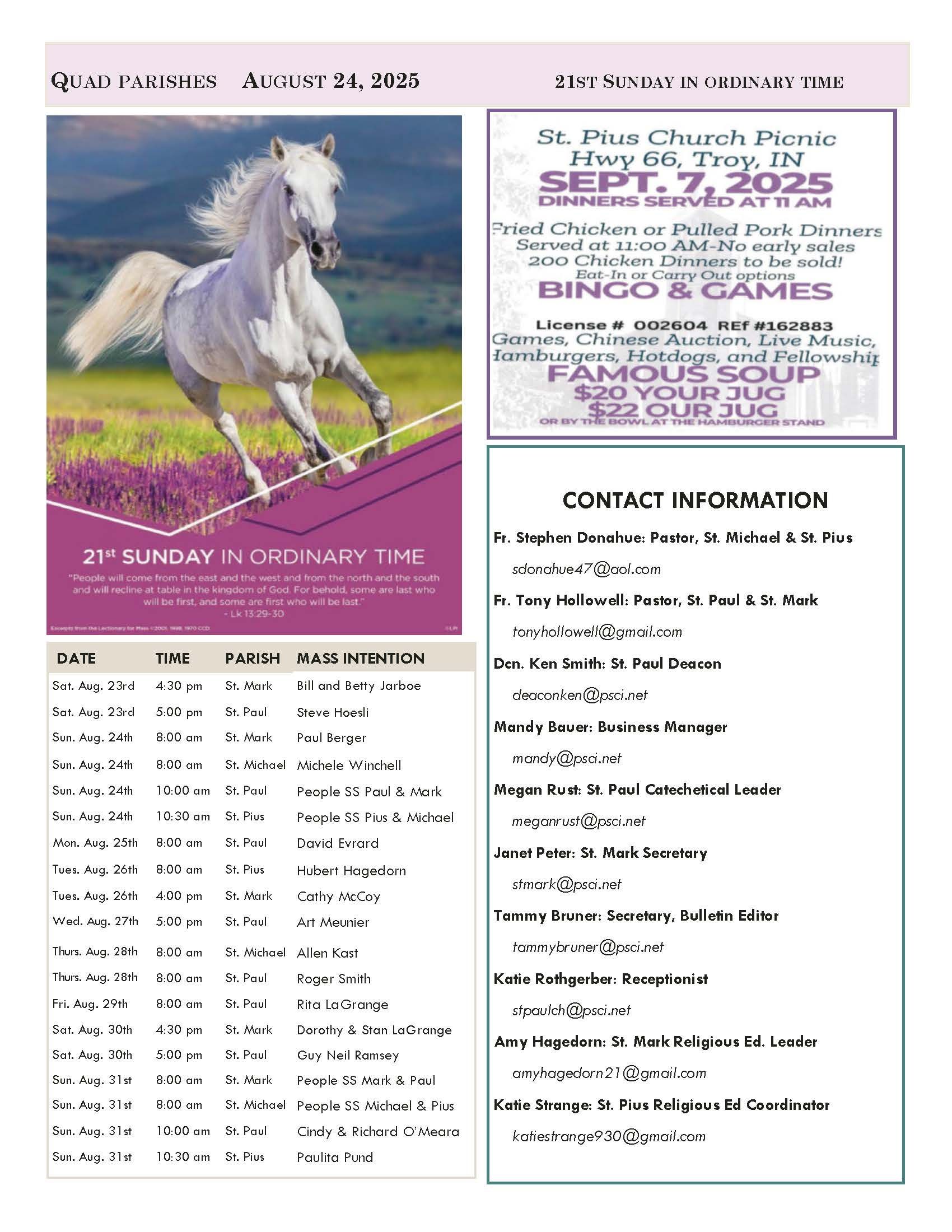 Would you like to advertise in our Sunday bulletin? Local business ads sponsor the printing of our weekly bulletins.